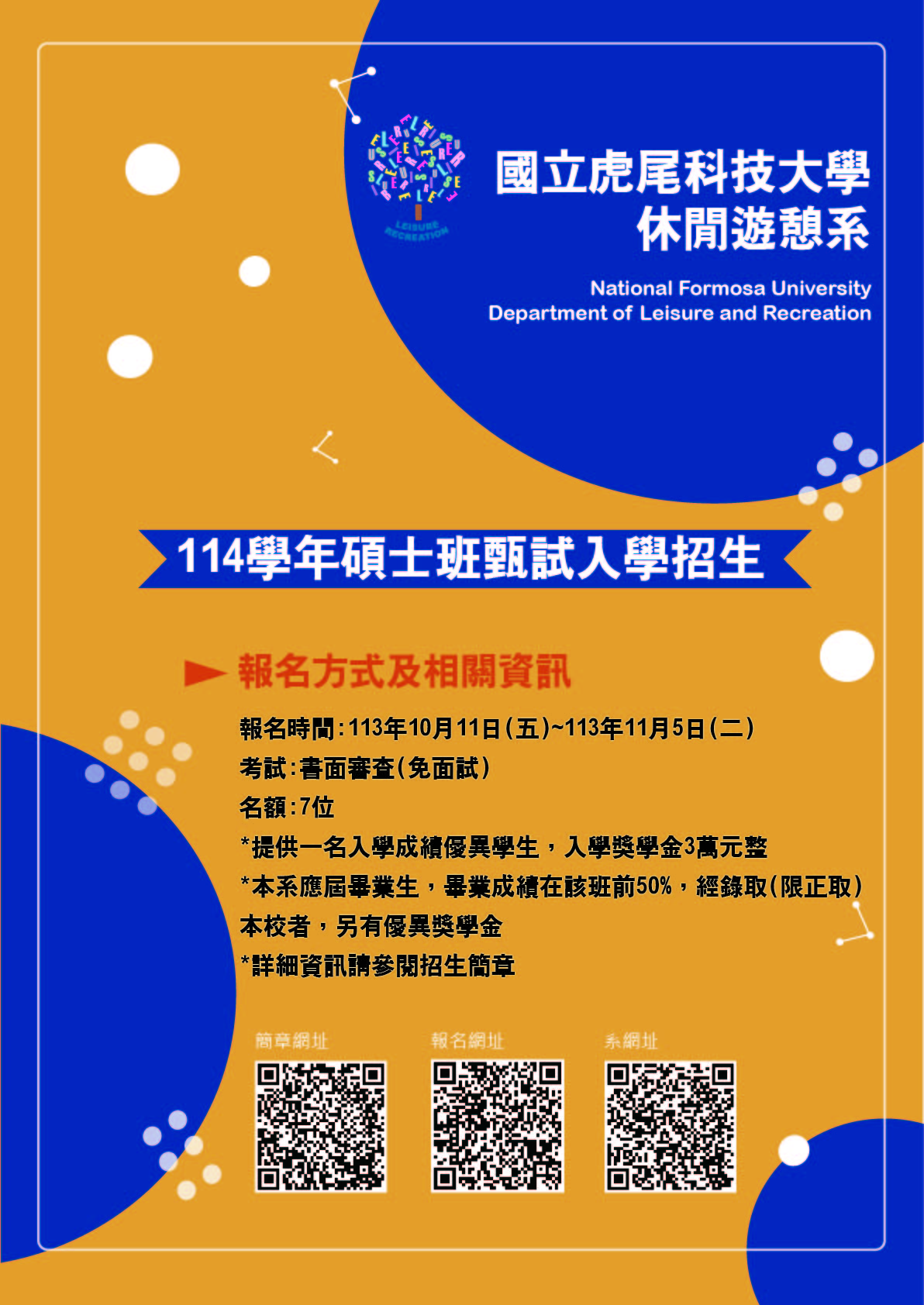 - 報名網址: https://enrollstudents.nfu.edu.tw/