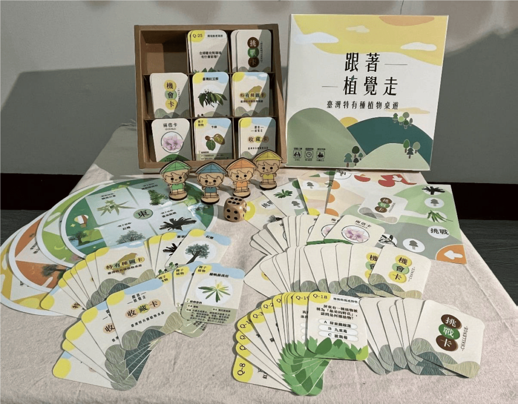 臺灣是擁有15萬以上物種的寶島(臺灣國家公園, 2018),臺灣特有種(含亞種即變種)就有 2萬以上的物種(中央研究院物多樣性研究中心, 2020其中臺灣 原生植物擁有 4500種以上。 而 生長在擁有如此豐富生態的寶島上的孩子們,應該要多多認識、接觸 以及 保護這一片美麗的土地,因此本組想透過設計桌上遊戲的方式讓臺灣的孩子們可以藉由遊玩 桌遊 的方式去認識臺灣的特有種植物 。桌上遊戲可以激發孩童的學習心,在遊玩過程中也可以陪養孩子的邏輯、創造力以及跟他人互動跟溝通的技能,對於兒童的發展方面是有幫助的 ,本組選擇國小中低年級的小朋友進行設計桌上遊戲,將桌上遊戲與臺灣特有植物的主題進行結合去發想與製作桌遊 希望 能 傳遞 環境教育的效果 ,讓小朋友可以透過此桌遊認識臺灣特有植物的美 ,進而懂得保護這美麗的環境 、 對學習 周遭 事物更有興趣 以及提升與他人的互動 。