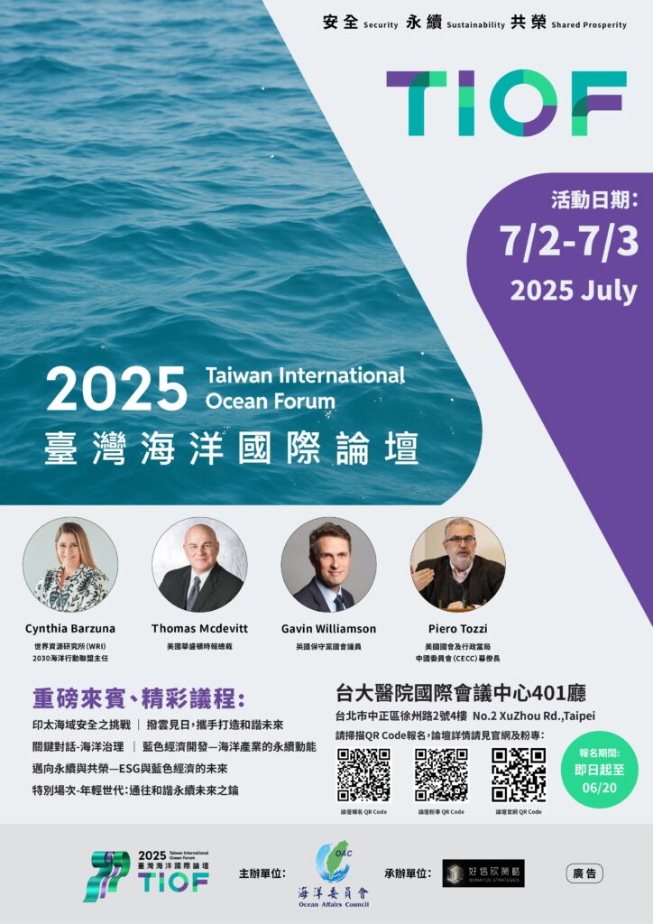 海洋委員會訂於114年7月2日(星期三)至7月3日(星期四)舉辦「2025臺灣海洋國際論壇」